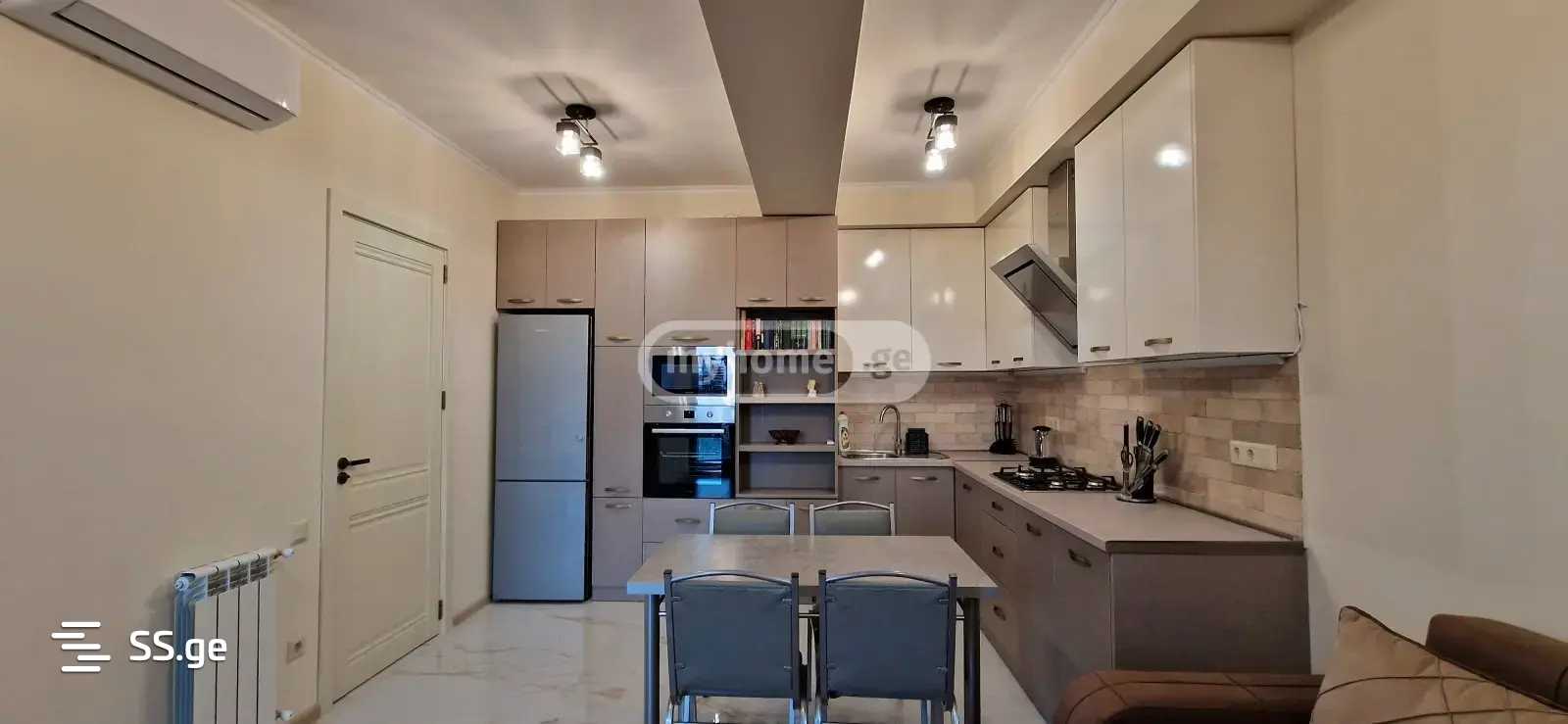 Комментарий: For rent 3-room apartment in the newly built Archi Saburtalo A building: new renovation, furniture, appliances (3 air conditioners, dishwasher, microwave oven, electric oven, gas stove, washing machine, television), 2 bright bedrooms, 2 balconies, living kitchen studio type, 24-hour security, video control, intercom, recreational space.