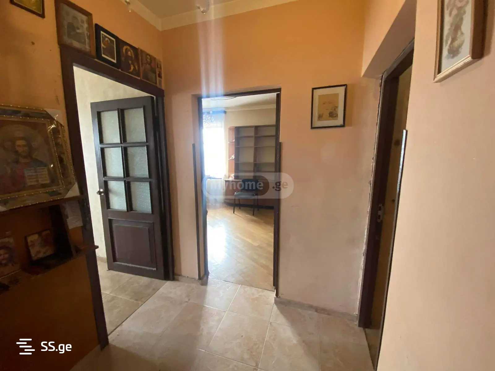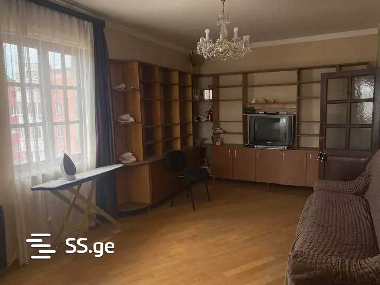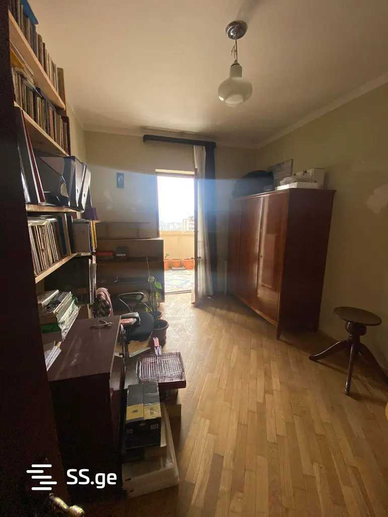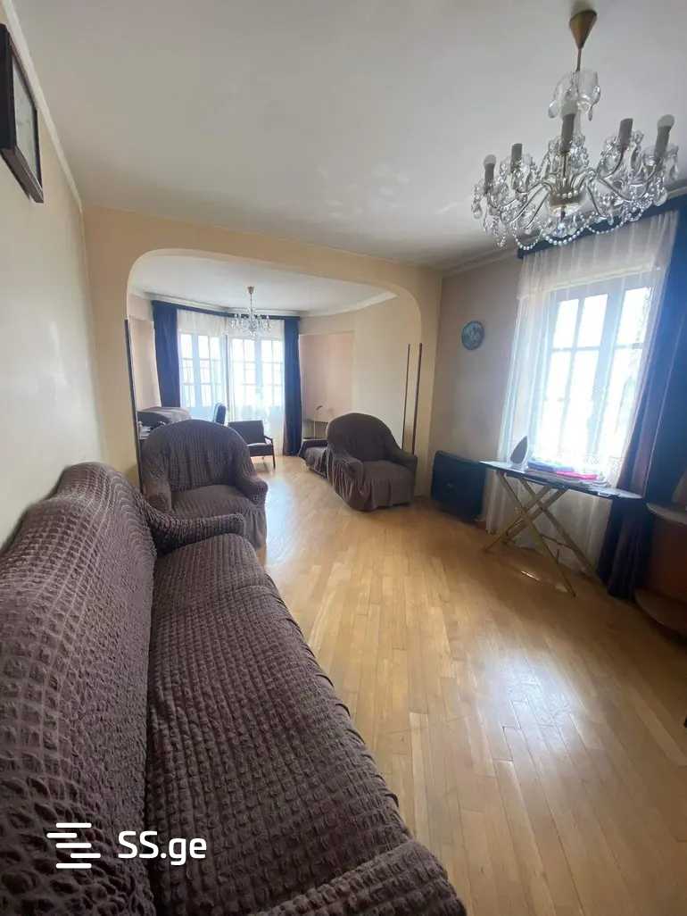 Комментарий: Apartment for rent with furniture and appliances, 94 sq/m, old renovation, on the side of Khizanishvili Street, on the top floor of a 16-story building.