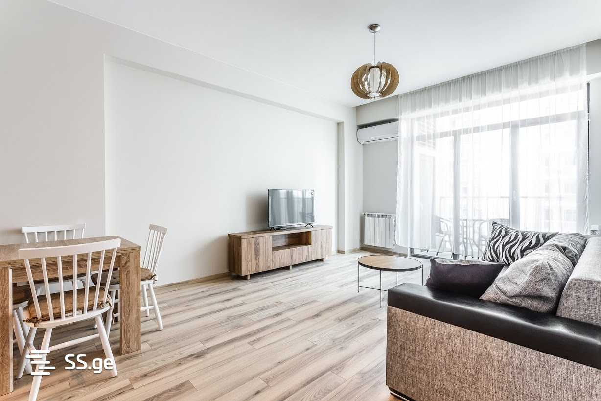 Комментарий: For rent a 2-room apartment in Saburtalo, on Givi Kartozia Street, in a newly built building of M-2, with parking and an isolated bedroom.