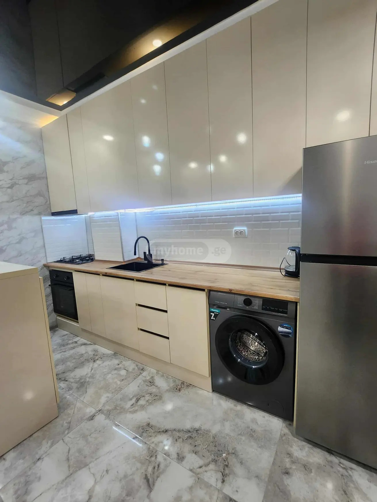 Сдается 2-комнатная квартира за 450$ в Кутаиси на улице Л. Асатиани, квартира в новостройке на 9 этаже, с новым ремонтом, евро ремонтом, нежилая, с новой мебелью и техникой, имеет гостиную студийного типа, 1 спальню, санузел. В квартире есть балкон, площадь квартиры: 50 кв.м.